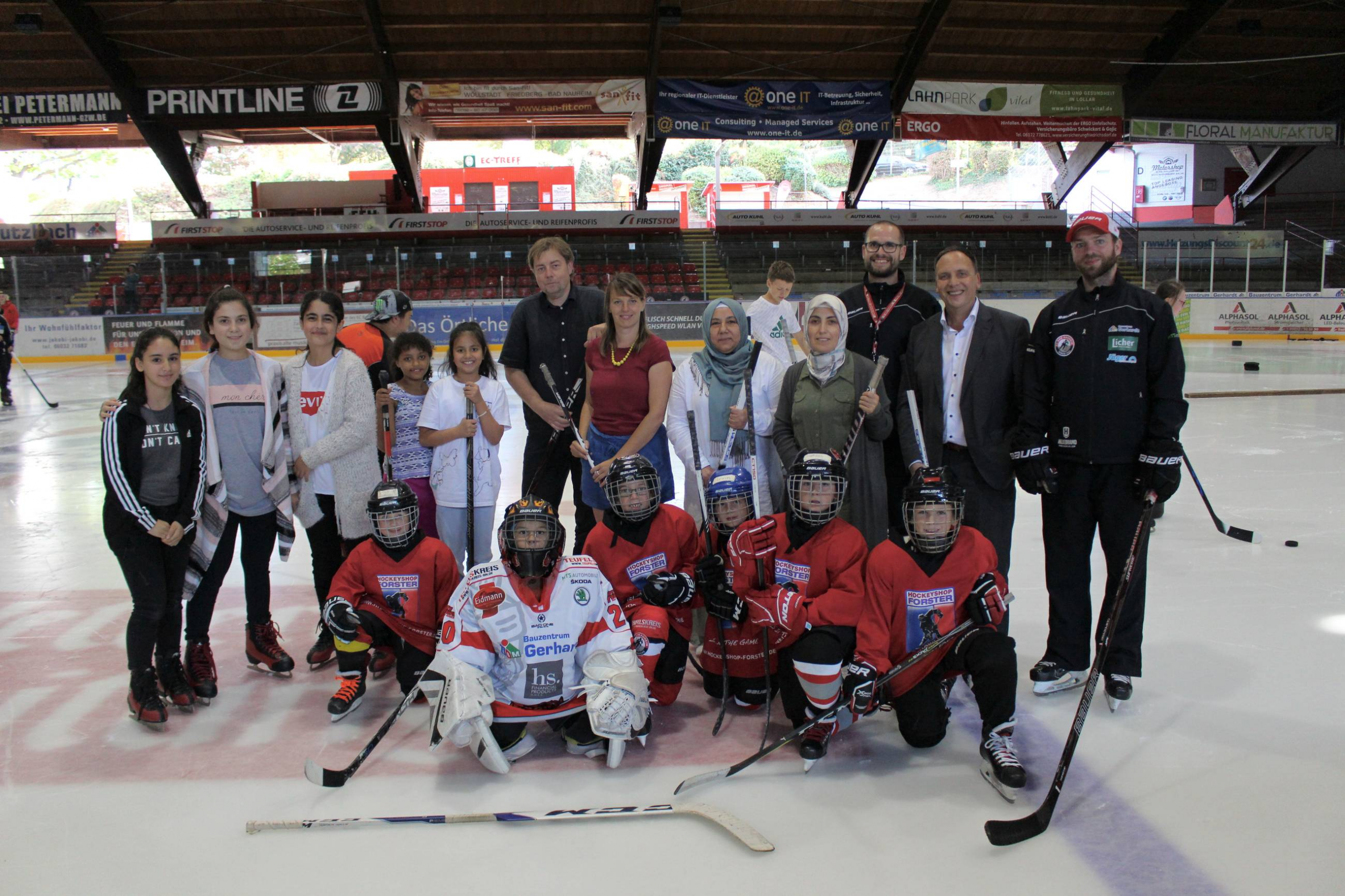 Gemeinsam mit Rote Teufel Bad Nauheim e.V. und Jugendmigrationsdienst des IBs Wetteraukreis hat der Rumi Kultur e.V. im Rahmen des IKW am 20.09.18 ein Eishockey-Schnuppertraining veranstaltet. Kinder und Jugendliche verschiedener Herkunft hatten die Gelegenheit, den Eishockeysport hautnah auf dem Eis zu erleben. Es gab drei Stationen, die von professionellen Trainern, Profispielern und gleichaltrigen Vereinsmitgliedern betreut